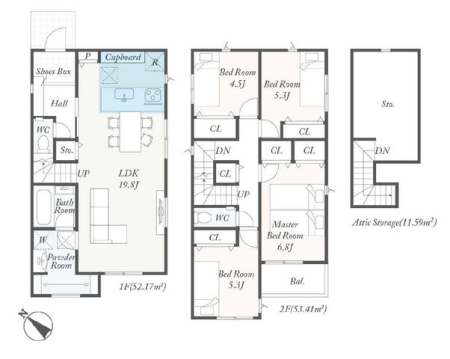 渋沢駅バス5分停歩10分♪ 全室2面採光、南東向き4SLDK♪ リビング階段♪室内物干付♪ ロフト(安全な固定階段)♪ パントリー♪カップボード♪