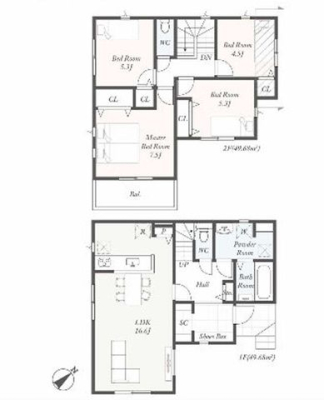 築年月 | 2025年6月築 | 間取り | 4LDK (LDK18/洋室6.8/洋室6.5/洋室5.3/洋室4.5) | ||