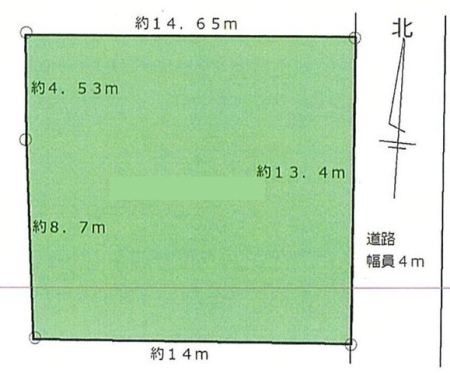 現況/引渡し 古屋あり 更地渡し/相談 接道状況 接道: 東 13.4m 私道 道路幅: 4m